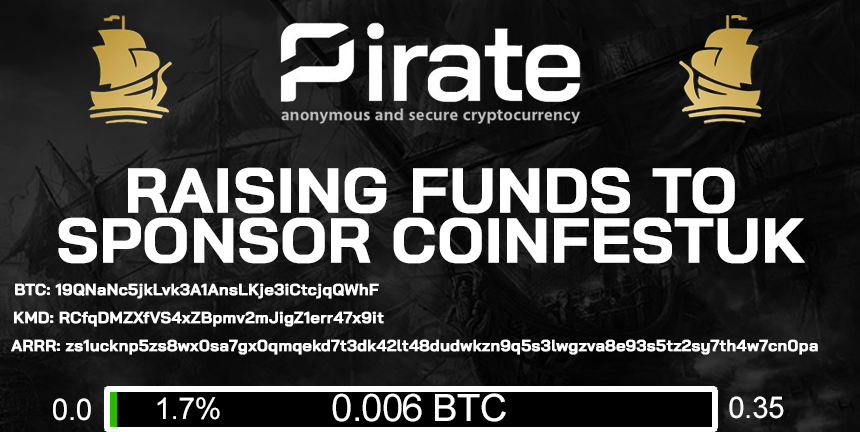 @PirateChain has begun fundraising to sponsor CoinFestUK! You can donate to the following addresses: